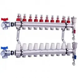 Utforska vårt sortiment av värmefördelare med vinklade ventiler och termometrar, som erbjuder både funktionalitet och enkel användning. Dessa värmefördelare är designade för att optimera värmesystemet och möjliggöra exakt temperaturkontroll. Med sin robusta konstruktion och smarta design passar de både golvvärme och radiatorsystem, vilket gör dem till ett mångsidigt val för ditt hem eller kommersiella byggnad.