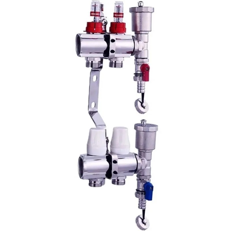 - Fördelaren för golvvärme med 2 kretsar inkluderar alla delar som syns på huvudbilden