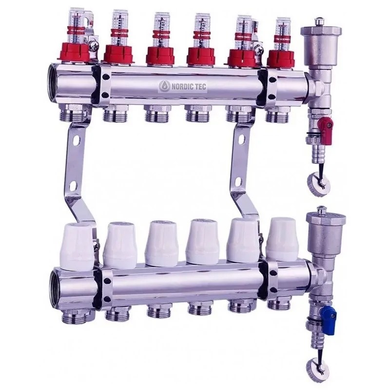Fördelare för golvvärme 6 kretsar - Nordic Tec STANDARD - 6 zoner