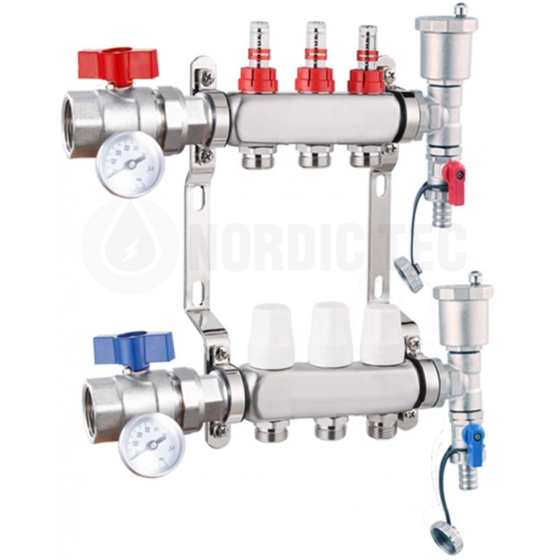 Värmefördelare för golvvärme i rostfritt stål Nordic Tec INOX 3 kretsar