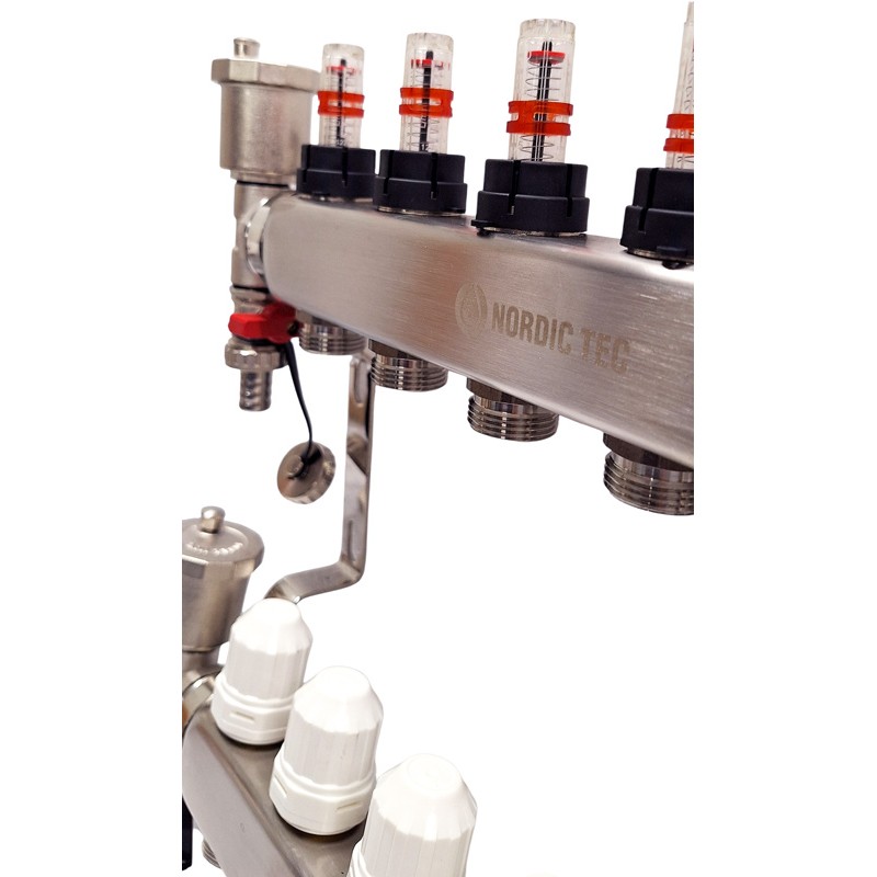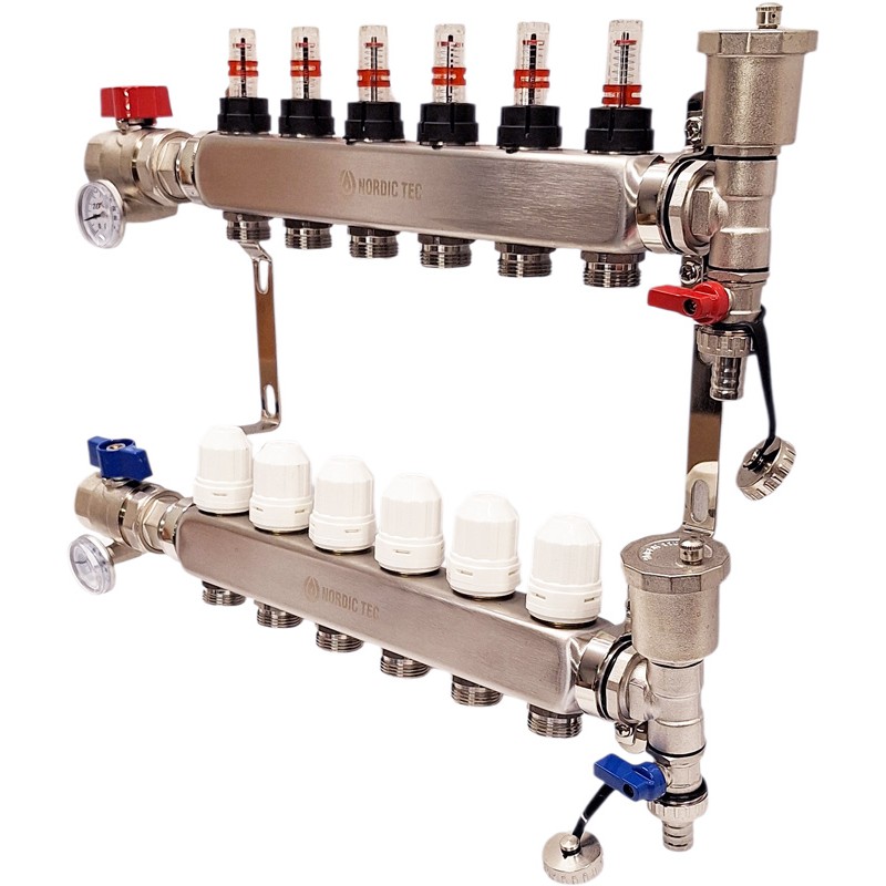Rostfritt fördelare för värmesystem och golvvärme Nordic Tec INOX 6 kretsar
