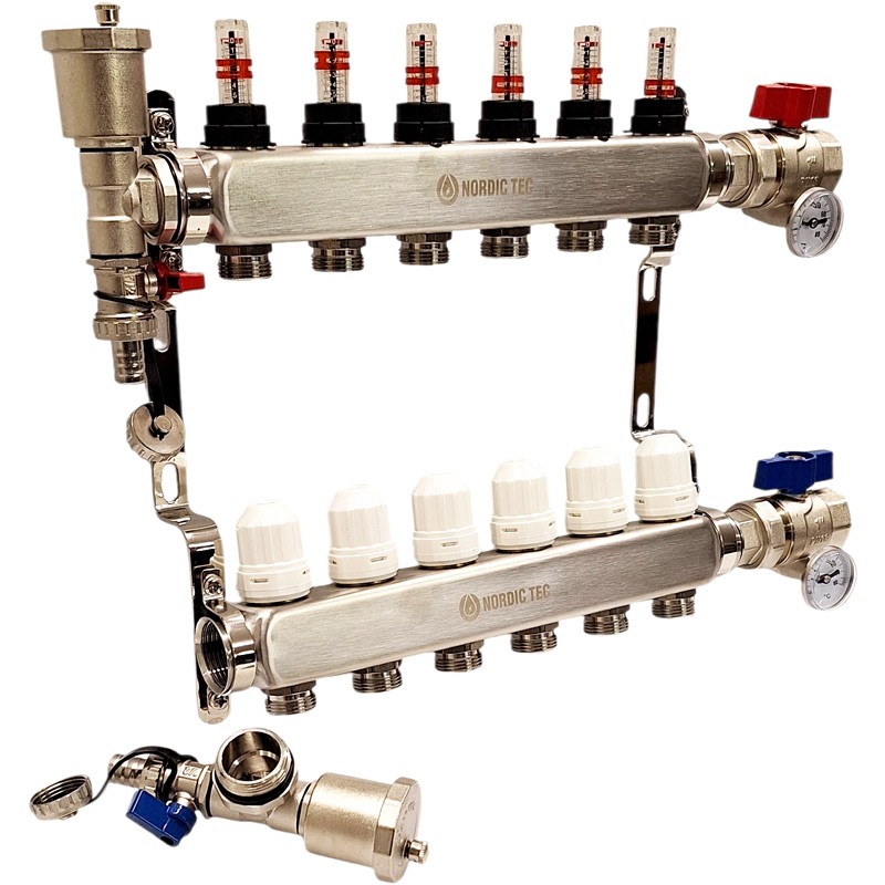 Rostfri värmefördelare Nordic Tec INOX 6 kretsar