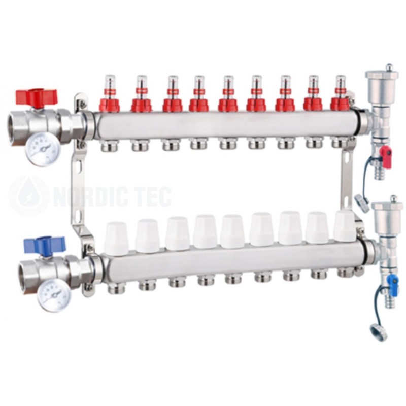 Rostfri värmefördelare Nordic Tec INOX 9 kretsar