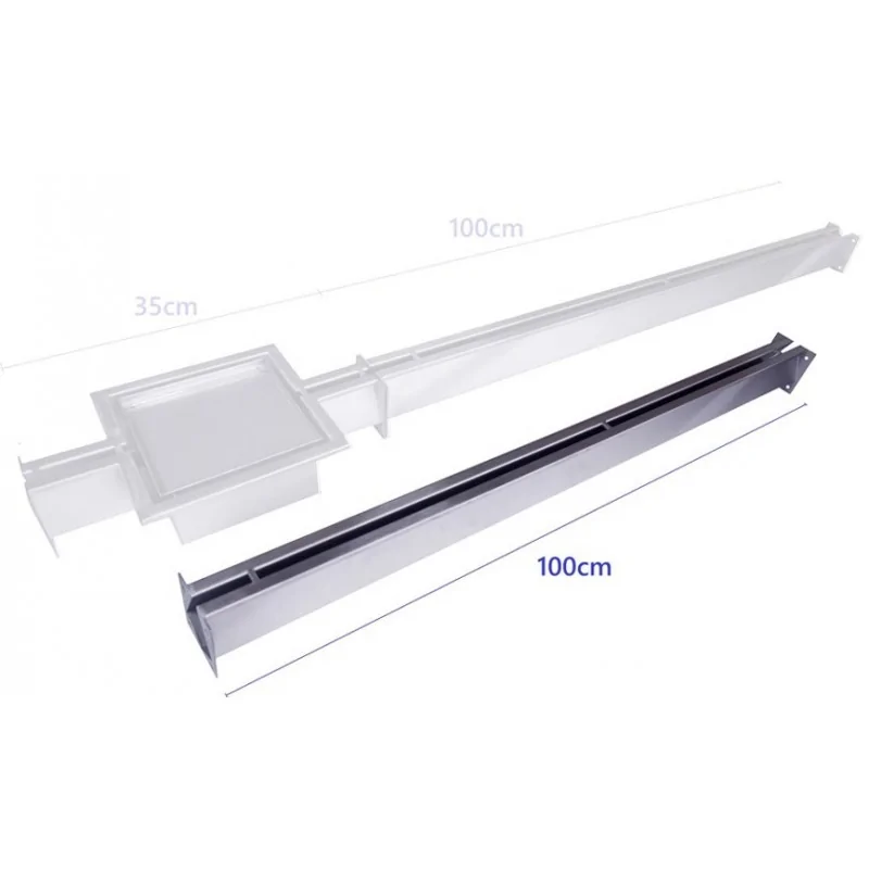 Dräneringskanal 1m - förlängningsarmen på ett garageavlopp är inte en separat produkt, utan endast ett tillbehör till garageavloppssatsen. Den används för att förlänga dräneringslinjen i garaget eller på annan plats där det behövs. Standardutbudet av Nordic Tec garageavlopp inkluderar en central avloppsdel (med vattenavlopp) samt två förlängningsarmar – vilket ger en total längd på 235 cm. Genom att lägga till ytterligare en arm från detta sortiment kan dräneringslinjen i princip utökas med ett obegränsat antal segment – tills önskad total längd uppnås. Förlängningsarmen kallas ibland även för ränna.