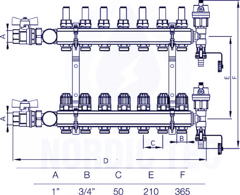 Nordic Tec Golvvärmefördelare - 7 kretsar med ventiler och termometrar