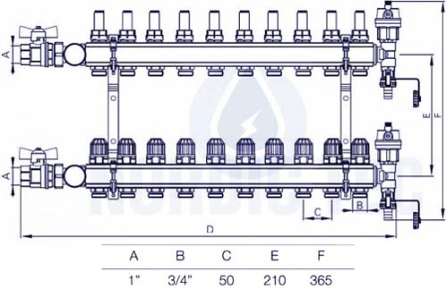 Struktur och sammansättning av 10-vägs golvvärmefördelare Nordic Tec