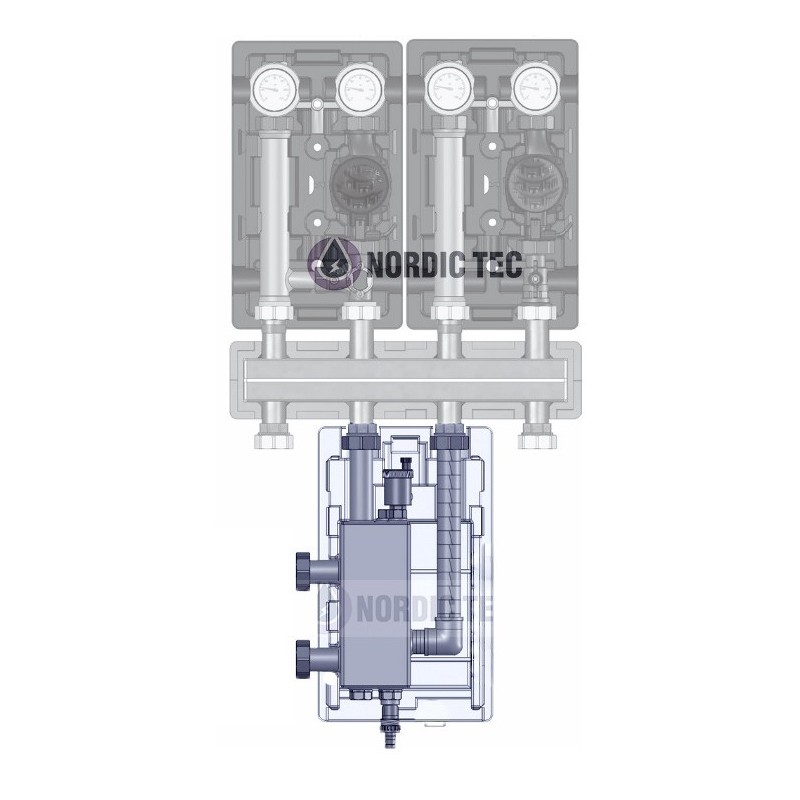Den hydrauliska separatorn är huvudsakligen avsedd för fördelare och pumpgrupper från Nordic Tec, men tack vare standardmått och centrumavstånd är den mycket ofta även en idealisk komponent för pannfördelare från andra tillverkare.