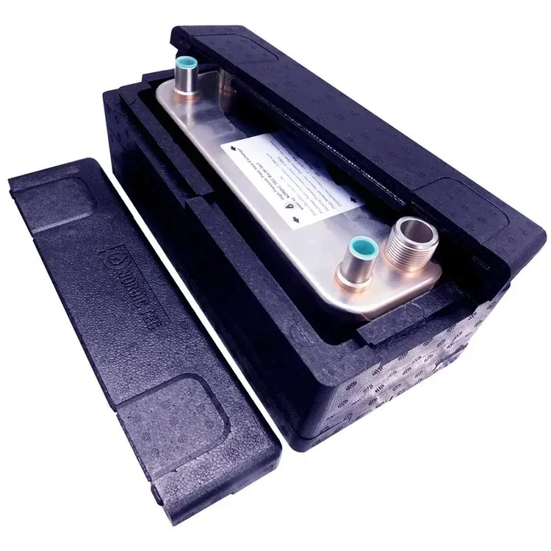 Isolering för freon-plattvärmeväxlare från NORDIC Tec Ba-26-F-serien, med gasanslutning (gas-vätskevärmeväxlare).