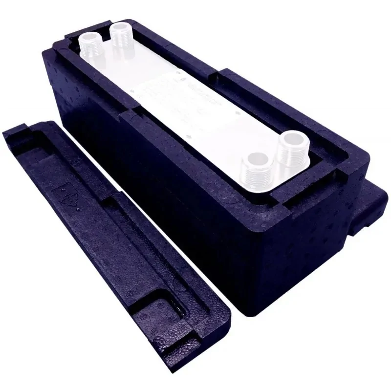 Isolering för freon-värmväxlare (eller för köldmedier som R32, etc.) – eller helt enkelt isolering för plattvärmväxlare – är en produkt som begränsar värmeförluster utåt, vilket ökar temperaturen på värmebäraren för att uppnå maximal möjlig effektivitet i värmeöverföringen mellan köldmediet och vatten eller glykol. Att förhindra värmeförluster utåt är avgörande för effektiviteten i hela processen.