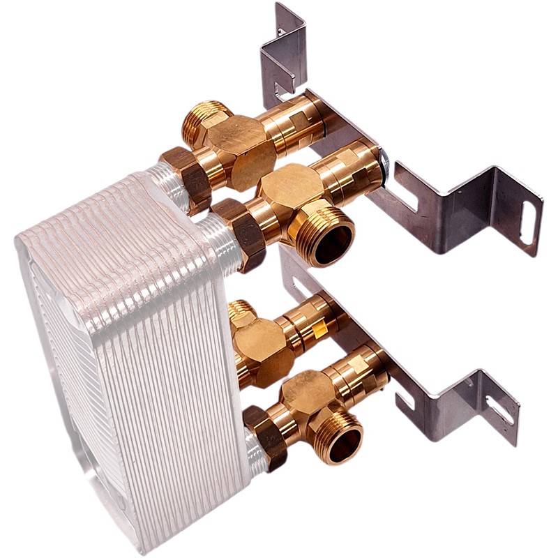 - Väggfäste: väggmontering för plattvärmeväxlare 1" med inkluderade kopplingar.