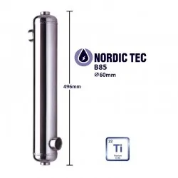 Titanvärmeväxlaren B55-Ti, en rörvärmeväxlare på 16 kW, är konstruerad för pooler och rekommenderas för användning med aggressiva vätskor där stål, inklusive rostfritt stål, inte uppfyller långsiktiga hållbarhetskrav. Detta inkluderar användning med saltvatten, vatten med tillsatt salt eller havsvatten. Enheten är helt tillverkad av titan (100 %, utan legeringar).