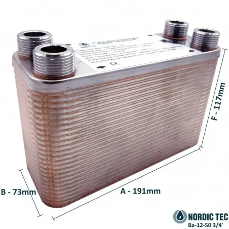 Plattvärmeväxlare för centralvärme NORDIC TEC Ba-12-50 3/4"
