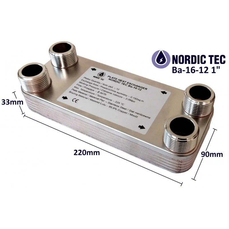 Tekniska data - Nordic Tec Ba-16-12 värmeväxlare 1"