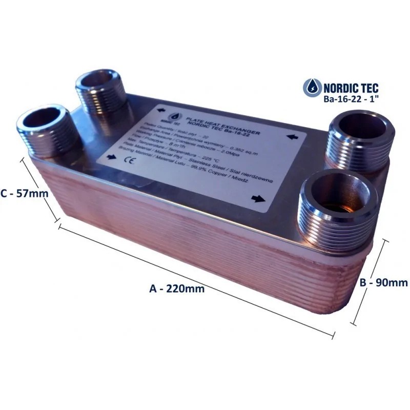 Tekniska data - Nordic Tec Ba-16-22 värmeväxlare 1"