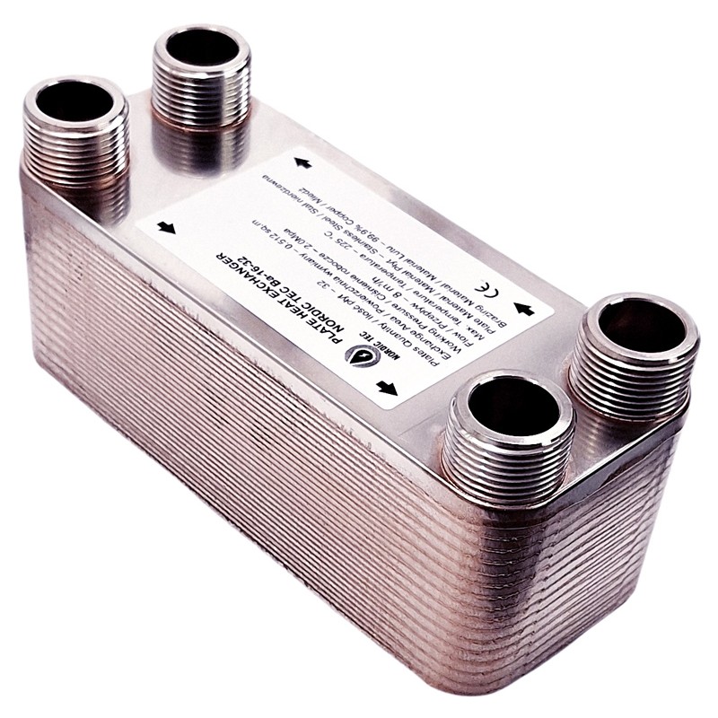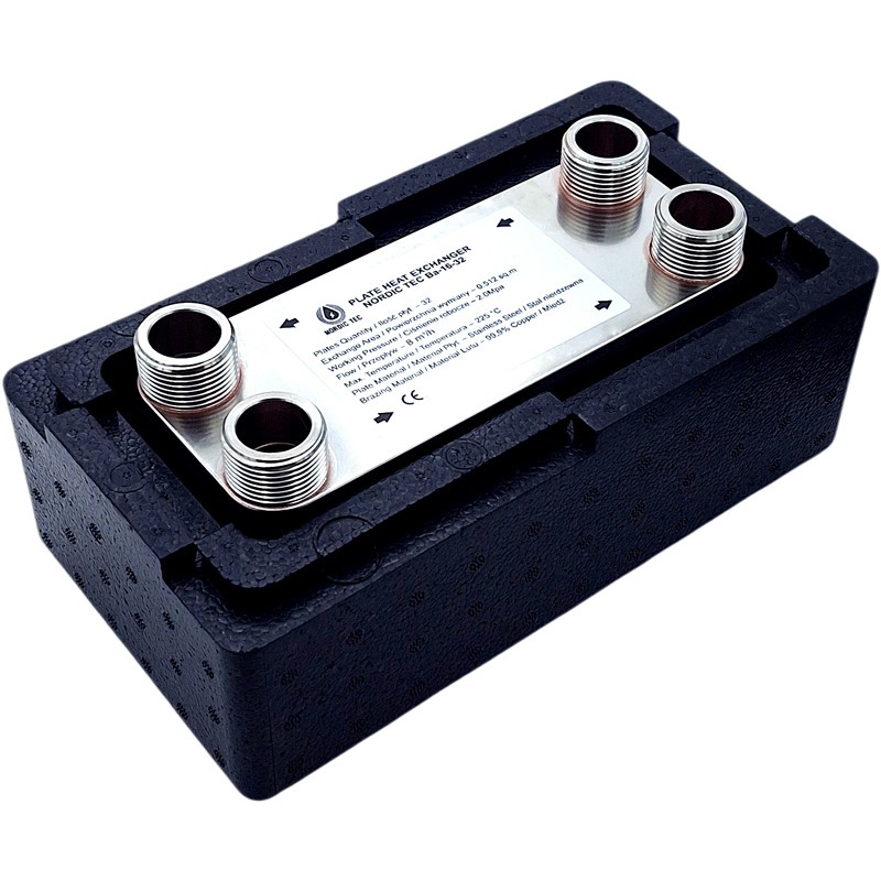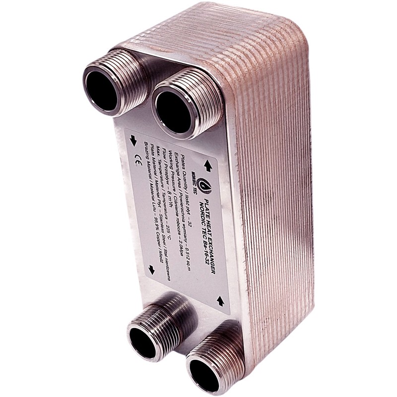 Värmeväxlare 32 plattor i rostfritt stål & anslutningar 1" - Nordic Tec Ba-16-32