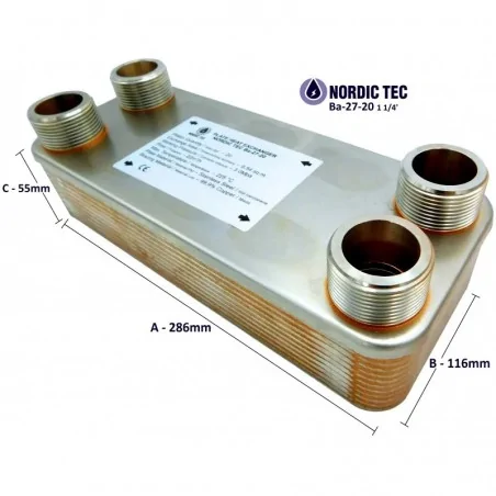 Tekniska data - Plattvärmeväxlare 1 1/4 tum Nordic Tec Ba-27-20