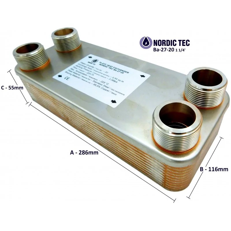Värmeväxlare med 20 plattor, 1 1/4 tum Nordic Tec Ba-27-20