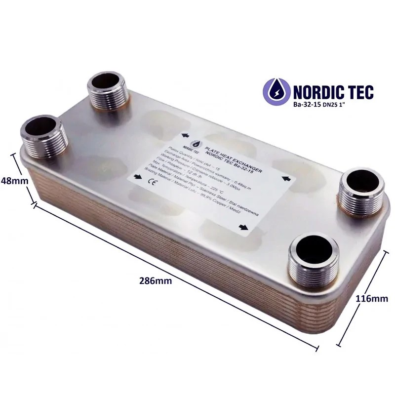 Mer information - Värmeväxlare 1 tum - Nordic Tec Ba-32-15