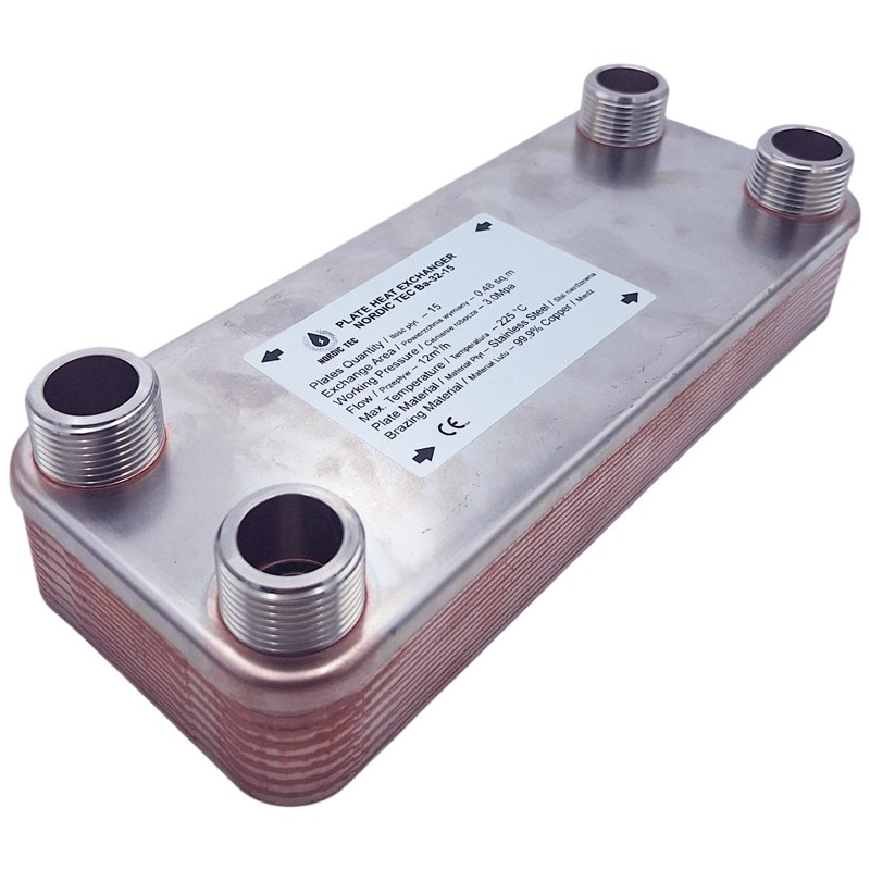 Värmeväxlare 1 tum - Nordic Tec Ba-32-15 - 4x 1", 15 plattor