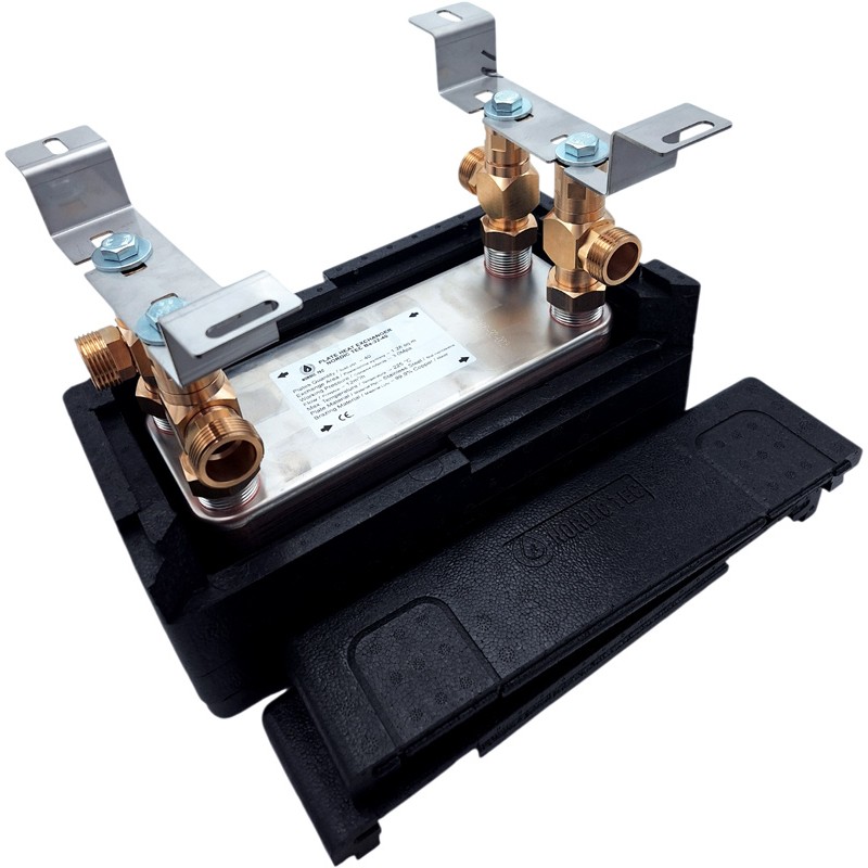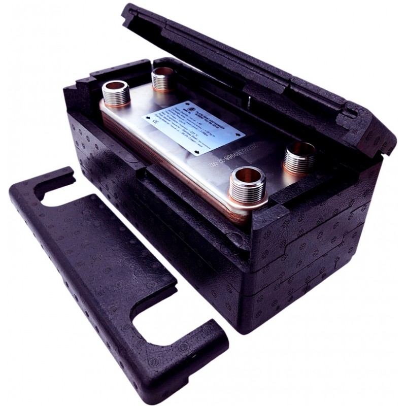 Fotot visar en värmeväxlare med isolering Nordic Tec Ba-32-40. Man bör komma ihåg att isoleringen är ett ✅ valfritt tillbehör.