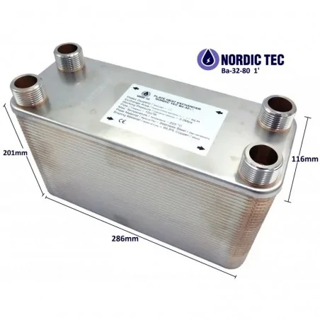 Värmeväxlare för värmepumpar och andra värmeenheter NORDIC TEC Ba-32-80 1"