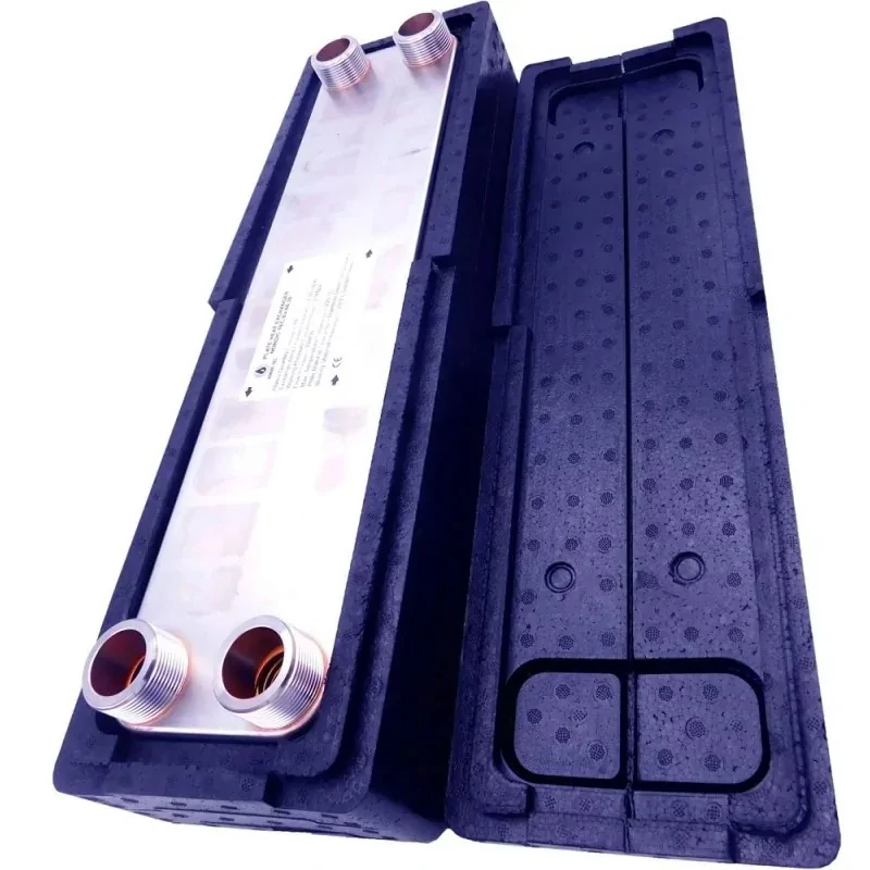 Plattvärmeväxlare med 20 plattor för kylsystem eller värmeanläggningar, med 1 1/4" anslutningar, utvändig gänga.