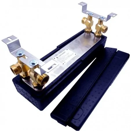 Exempelbilden visar värmeväxlaren komplett med valfria tillbehör. Det är möjligt att köpa Ba-60-20-värmeväxlaren med värmeisolering och väggfäste för att skapa ett set som visas på bilden. Val av tillbehör till värmeväxlaren kan göras direkt ovanför priset.
