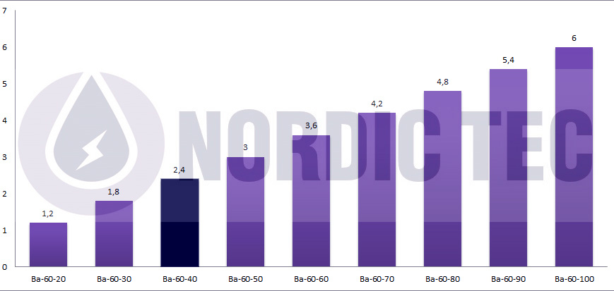 Med en total yta på 2,4 m² kan den hantera luftvärmare – även drivna av glykol – med en effekt på upp till 90 kW. När det gäller traditionella värmepannor är den maximala effekten liknande och kan, beroende på parametrar, nå upp till 80–90 kW och i moderna system till och med upp till 100 kW. En mycket viktig fördel med Ba-60-seriens växlare, särskilt modellen Ba-60-40, är det låga tryckfallet, vilket spelar en avgörande roll vid uppvärmning av byggnader som industribyggnader och lager.