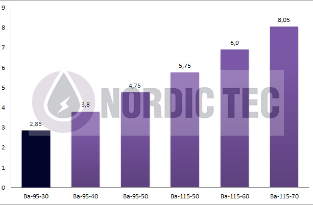 Plattvärmeväxlare med 2" anslutningar för stora applikationer där en stor anslutningsstorlek och lågt tryckfall är viktiga. Ba-95-30 värmeväxlaren är utrustad med 30 stålplattor och har en stor värmeväxlande yta på 2,85 m². Den används ofta som värmeväxlare för värmepumpar i system där den arbetar med vatten och glykol. Den kan också användas i kylapplikationer samt fungera som en olje-vatten värmeväxlare.