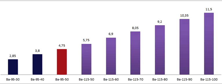 Plattornas yta - värmeöverföringsyta - värmväxlare Ba-95-50 : 4,75 m²