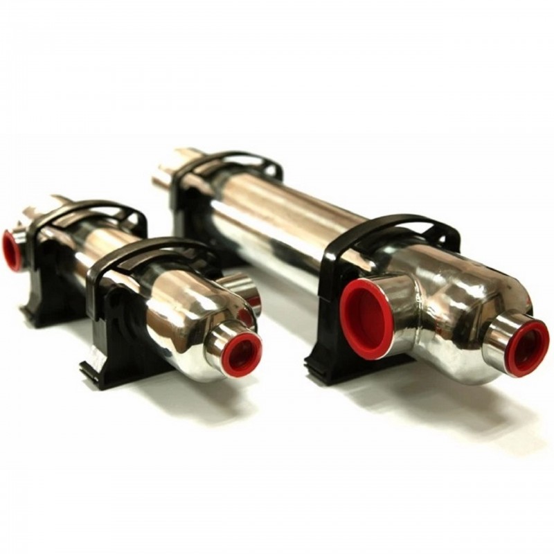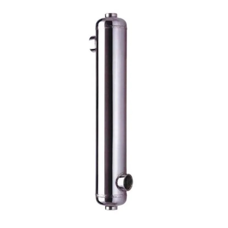 Material för värmväxlaren (mantel och rör): Rostfritt stål (100%, utan tillsatser) - designad för att fungera med klorerat vatten, även högt klorerat.