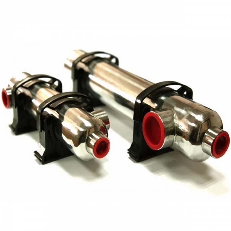 Värmväxlarens material: Rostfritt stål (100%) - designad för att fungera med klorerat vatten, även högt klorerat.